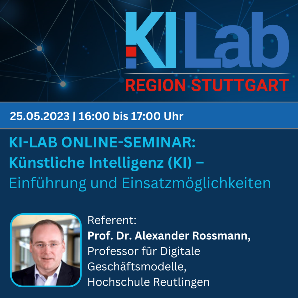 Der Begriff Künstliche Intelligenz (KI) wird heute in Wirtschaft und Gesellschaft prominent diskutiert. Prof. Dr. Alexander Rossmann gibt eine anschauliche Einführung in die Welt der Künstlichen Intelligenz (KI) und erklärt die Einsatzmöglichkeiten und die Vorteile von KI. Als einer der wissenschaftlichen Leiter des KI-Labs der Region Stuttgart wird Professor Rossmann außerdem darlegen, welche Möglichkeiten das KI-Lab Region Stuttgart konkret für kleinere Unternehmen bei KI-Vorhaben bietet.
